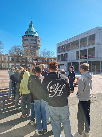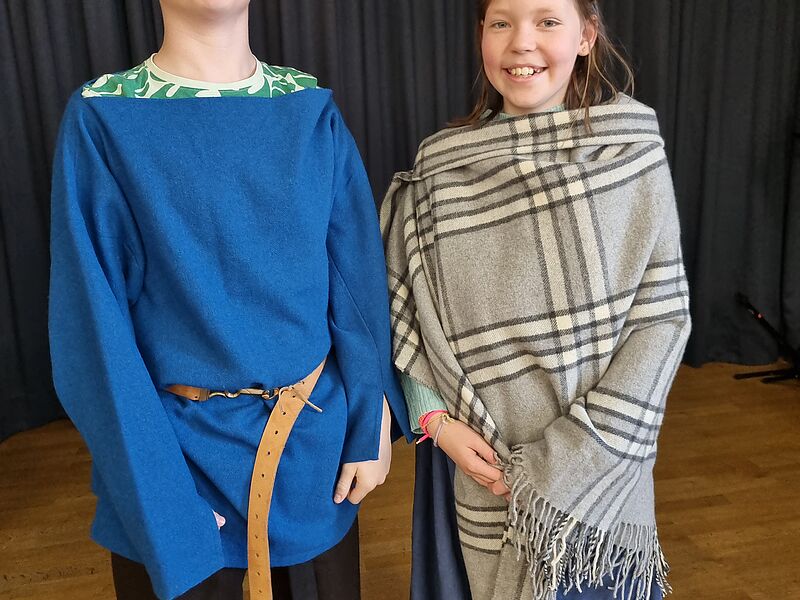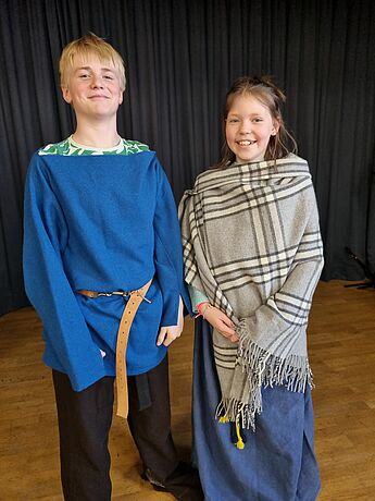 Die Schülerinnen und Schüler durften römische und germanische Keidung anprobieren, germanische Zelte aufbauen und mit Hilfe von Repliken, von Fundstücken aus Kalkriese, einiges über die Zeit der Varusschlacht erfahren. Ein Höhepunkt war sicherlich die berühmte Reitermaske, der nachweislich älteste Fund zu einem römischen Maskenhelm aus dem 9. n. Chr., die viele "Museumsbesucher" interessierte.