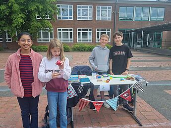 Danke auch für das Engagement vieler Eltern, die den Flohmarkt mitermöglicht haben und an die Q1, die alle Besucher:innen und Verkäufer:innen mit Getränken und Eis versorgte. Das eingenommene Geld, knapp 150 Euro, welches bei dieser Aktion eingenommen wurde, wird der gemeinnützigen Einrichtung Vinzenzwerk Handorf e.V. gespendet. Sollte noch jemand zusätzlich etwas an das Vinzenzwerk spenden wollen, darf er/sie sich gerne bei Herrn Byhan melden.