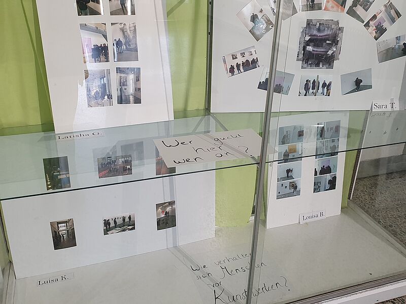 Seit letzter Woche sind in den Vitrinen im Foyer des WHGs Projekte des Kunst-Leistungskurses ausgestellt, die während eines Ausstellungsbesuchs in der Kunstakademie Münster entstanden sind. Die Schülerinnen und Schüler setzen sich in diesen forschend mit dem Verhalten von Besucherinnen und Besuchern vor Kunstwerken in Ausstellungen auseinander und halten ihre Beobachtungen in fotografischen Serien fest. Inspiriert wurden die 12 LKler*innen von den Arbeiten des Fotografen Thomas Struth, der ebenfalls in Ausstellungen die sogenannten "Museumsbilder" aufnahm und sich u.a. die Frage stellte "Wer betrachtet eigentlich wen?" Experimentiert wurde darüber hinaus mit der Art und Weise, wie fotografische Serien präsentiert werden können und welche Wirkungen mit bestimmten Präsentationsformen verbunden sind. Viel Spaß beim Betrachten der Ausstellung wünscht der Kunst LK des Wilhelm-Hittorf-Gymnasiums!