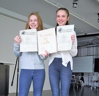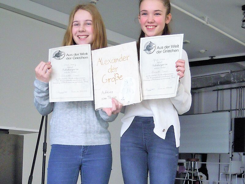 Beim diesjährigen Kreativwettbewerb „Aus der Welt der Griechen“ für Lateinschüler des 6. und 7. Jahrganges aus NRW siegten Clara Hannig (7a) und Aglaja Vorona (7c) in der Kategorie: Gestalte einen Comic zum Thema „Alexander der Große“. Schon im letzten Jahr gewannen die beiden Lateinerinnen bei diesem Wettbewerb.