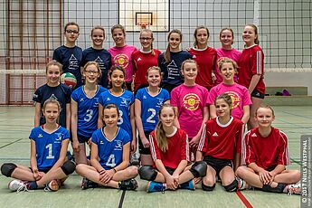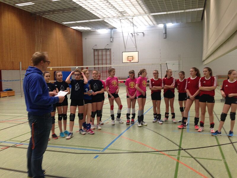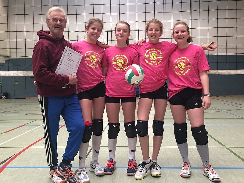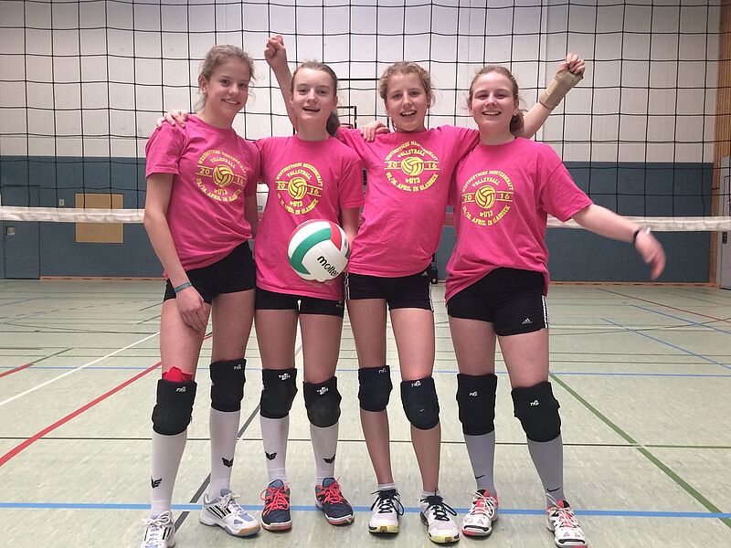 Nicht das Pascal-Gymnasium war der erwartet schwere Gegner, sondern die Spielerinnen des Kardinal-von-Galen-Gymnasiums aus Hiltrup waren gleich im ersten Spiel die größte Hürde in diesem Turnier. Vielleicht lief es im ersten Satz, den das „Hittorf“ 25:17 gewann, zu glatt, denn die sehr gut umgesetzten taktischen Anweisungen des gegnerischen Coachs brachten unsere Mannschaft mehr und mehr in Bedrängnis. Das selbstbewusste Auftreten aus dem ersten Satz ging mehr und mehr verloren und so mussten Carla, Nicole, Theresa und Lina letztendlich den 2. Satz mit 24:26 abgeben. Ein 3. Satz musste die Entscheidung bringen. Nach einer 4:1 Führung schien die Mannschaft auf dem richtigen Weg zu sein, machten aber zu viele nervöse Fehler und lagen beim Seitenwechsel 8:7 im Rückstand. Hochkonzentriert und mit dem Selbstvertrauen aus dem 1. Satz beendeten die Mädchen mit 15:12 den Satz. Das hieß nach 2 leichten Spielen gegen die eigene 2. Mannschaft und das Pascal: Stadtmeister 2017.