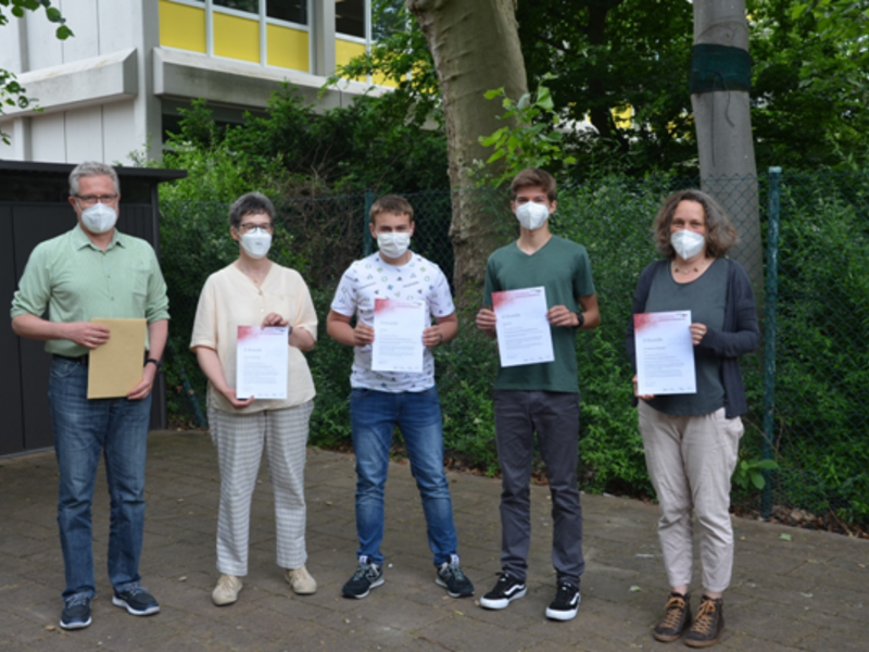 Kai und David waren bei ihren Experimenten so erfolgreich, dass sie zur zweiten Runde, einem Quiz quer durch alle Naturwissenschaften, zugelassen wurden. Diese Prüfung meisterten die beiden so erfolgreich, dass sie auch zur dritten Runde, zur Klausurrunde, zugelassen wurden. Hier warten sie noch gespannt auf die Bewertung.