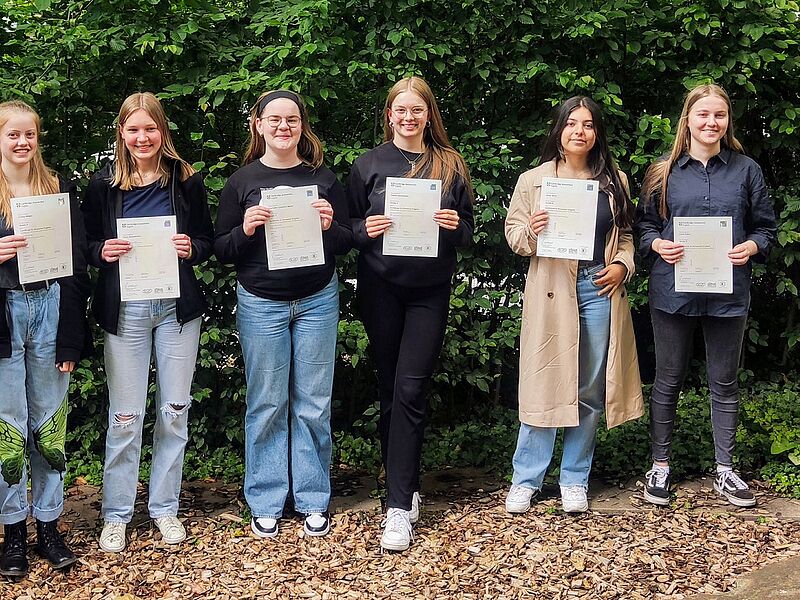 Fast hätten es die Zertifikate nicht mehr rechtzeitig vor dem Praktikum der Q1 Schüler*innen von der Insel, aus der Druckerpresse im englischen Cambridge, bis ins Münsterland geschafft. Das wäre schade gewesen, zumal in diesem Jahr gleich fünf der neun Schüler*innen aus den Stufen EF bis Q2 des Wilhelm-Hittorf-Gymnasium nicht 'nur' das angestrebte "C1"-, sondern gleich das höchstmögliche "C2"-Niveau bescheinigt bekommen haben.