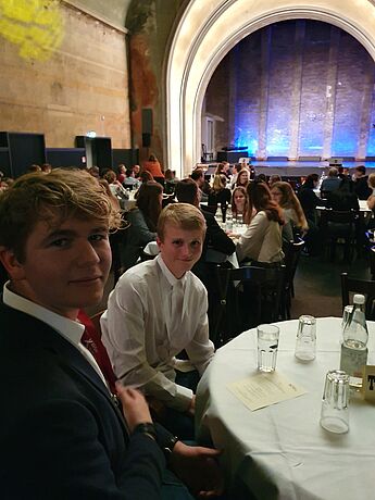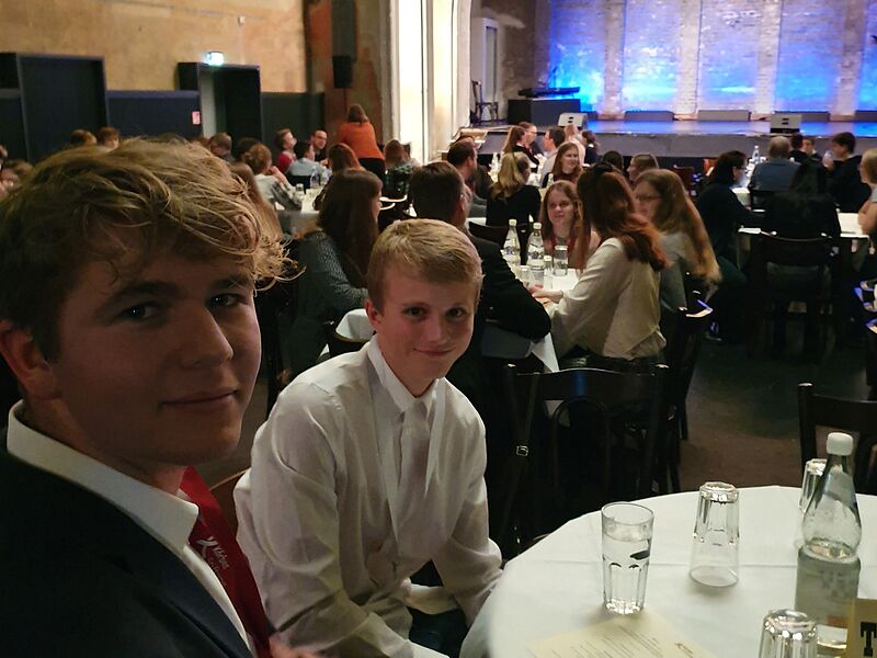 Auf die zahlreichen Landespreise, einen Förderpreis und einen dritten Bundespreis dürfen die jugendlichen Forscherinnen und Forscher vom Hittorf sehr stolz sein! Joris Haenlein (EF) - Preisträger eines 3. Bundespreises - und Tarek Lichtenfeld - Preisträger eines Landespreises NRW - wurden zur Festveranstaltung der Körber-Stiftung in Berlin von ihrer Lehrerin Frau Reinhart begleitet.
