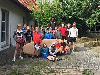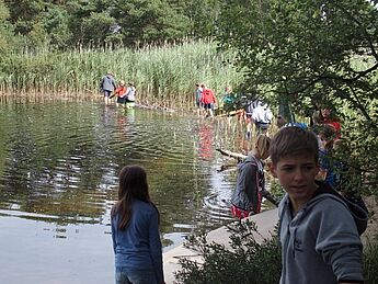In den Projekttagen hat unsere Gruppe eine ca. 60 km lange Fahrradtour ans Heilige Meer gemacht. Nachdem wir unsere Zelte auf dem Campingplatz am Herthasee aufgebaut und dort zu Abend gegessen haben, sind wir noch einmal 5 km zum Naturschutzgebiet „Heiliges Meer“ in der Nähe von Hörstel gefahren. Dort wurde uns zuerst ein kleiner Vortrag über das Gebiet und die im See schwimmenden Tiere gehalten. Nach dem Vortrag sind wir mit Booten über das Heilige Meer gefahren. Zum Teil gab es Stellen, die zehn Meter tief waren, aber an den Stellen, die nicht so tief sind konnten wir mit Aquaskopen den Grund sehen. Wir haben auch etwas über Seerosen und Muscheln erfahren. Am nächsten Tag sind wir nach dem Frühstück zum Erdfallsee gelaufen. Dort haben wir Fische gefangen, um sie von Nahmen anschauen zu können. Danach haben wir gepicknickt und sind anschließend fast die ganzen 60 Kilometer am Dortmund-Ems-Kanal zurück zur Schule gefahren.