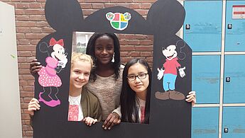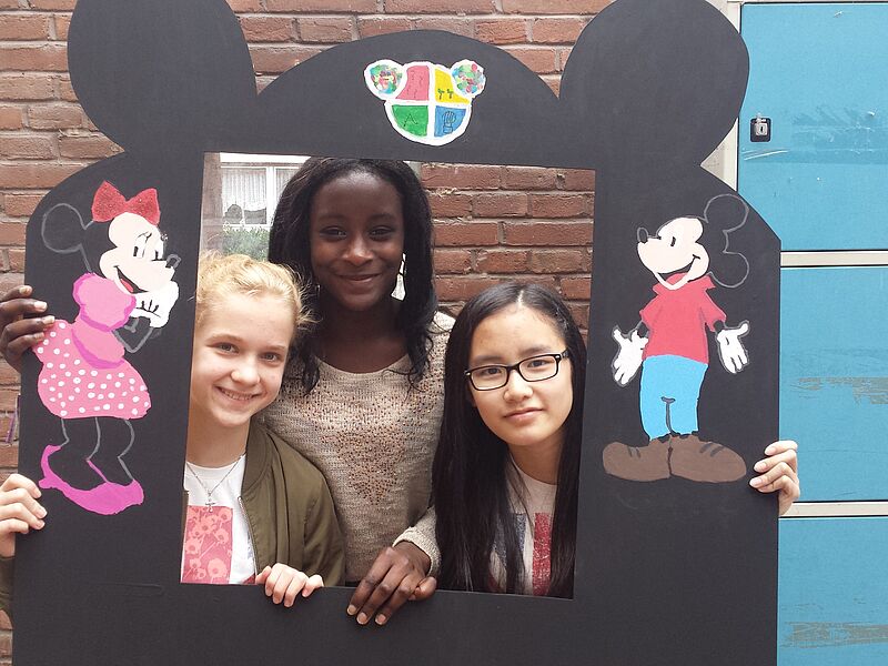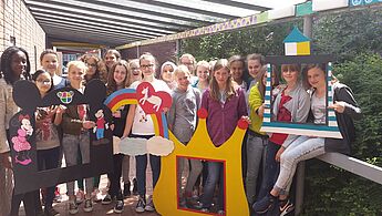 Mit vielen bunten Farben wurden die Leisten und Fensterumrandungen neu gestaltet. Beim Aussägen der neuen Umrandungen kam es sogar zu Kooperationen mit dem Projekt Pausensportgeräte. Das Fazit der Teilnehmerinnen war hinterher einstimmig: Es sieht jetzt viel besser aus als vorher!