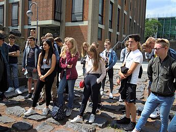 Doch kurz bevor wir unser Latinum bekommen, waren wir am Dienstag den 02.07.2019 mit beiden Lateinkursen in Köln. Gemeinsam mit Frau Bunge und Frau Wethkamp waren wir in der Stadt auf den Spuren der Römer unterwegs. In ganz Köln findet man nämlich Spuren der Stadtmauern, alte Torbögen und Grabsteine aus der Zeit, wo/ in der Köln zum römischen Reich gehörte.