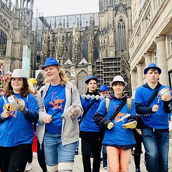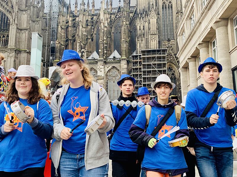 Mit der Startnummer 25 ging es am Chlodwigplatz los und schon zu Beginn auf der Severinstraße war klar, dass es – trotz des etwas durchwachsenden Wetters - wieder ein fantastischer Zug werden würde. Etwas Glück hatten wir, dass sich der Zug genau in dem Moment staute, als wir vor den WDR-Kameras standen, was uns zu einem unverhofft mehrminütigen Auftritt verhalf (noch zu sehen in der WDR-Mediathek).
