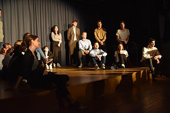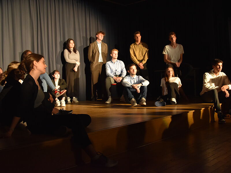 In der vergangenen Woche fanden die Aufführungen des Literaturkurses (Q1) unter der Leitung von Klaus Posingies statt. 16 Schülerinnen und Schüler hatten sich seit Monaten intensiv Gedanken gemacht, welche Texte sie aufführen und auf welche Weise sie sie inszenieren wollten.