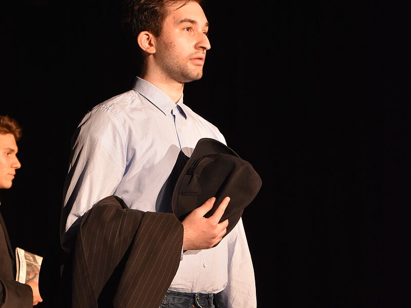 Und als am Schluss der gesamte Literaturkurs die Frage Tucholskys „Ist das Publikum denn wirklich so dumm?“ in einer Publikumsbeschimpfung in den Zuschauerraum stellt, spätestens da wird uns bewusst, wie aktuell wir seine Texte verstanden haben und auf welche Weise sie uns heute noch etwas zum Bewusstsein bringen, weil Tucholsky ja gesagt hat: „Es geht nirgendwo merkwürdiger zu als auf der Welt“.