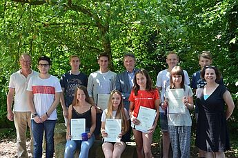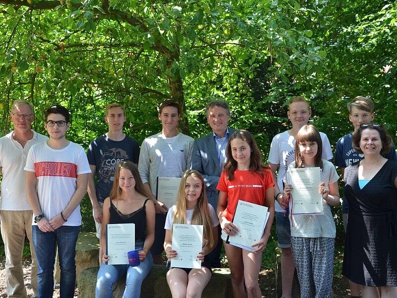 Drei weitere junge Schülerinnen der Jahrgangsstufe 5 und 6 schafften es gleich bei ihrer ersten Teilnahme beim Osteuropawettbewerb „Begegnung mit Osteuropa“, einem Schülerwettbewerb, der in NRW und Osteuropa ausgeschrieben wird, mit ihren künstlerischen Beiträgen jeweils einen Siegerpreis zu gewinnen. Der Osteuropawettbewerb stand unter dem Motto „65 Jahre wertvoll“. In verschiedenen Projekten konnten sich Schüler diesem Motto nähern. So wählten die drei Schülerinnen unter dem Projekt „ Faszination Kunst“ ihre Themen. Bettina Schröder, die jüngste Gewinnerin, beeindruckte die Jury mit ihrer eigens entworfenen Bildergeschichte. Amelie Schell und Lotta Fechte überzeugten mit selbst entworfenem Schmuckset aus recycelbaren Materialien und Skizzenbuch.