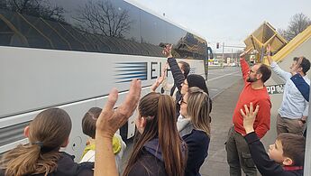 Bevor es am Freitag schon wieder Abschiednehmen hieß, konnten unsere Gäste bei herrlichem Sonnenschein und frühlingshaften Temperaturen ihren Spaziergang entlang des Aasees zum Münsteraner Allwetterzoo genießen. Der Zoobesuch war für alle ein Vergnügen und so manches Tierchen aus dem Zooshop fand noch seinen Weg ins Gepäck zurück nach England. Zurück an der Schule trafen sich noch einmal alle deutschen und englischen Partner*innen zu einem gemeinsamen Mittagessen in der Mensa der Schule. Dann hieß es Kofferpacken, und der Bus Richtung Flughafen verließ Münster gegen 15 Uhr, nicht ohne ein paar Abschiedstränchen auf beiden Seiten.