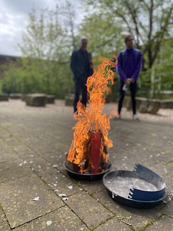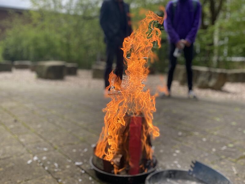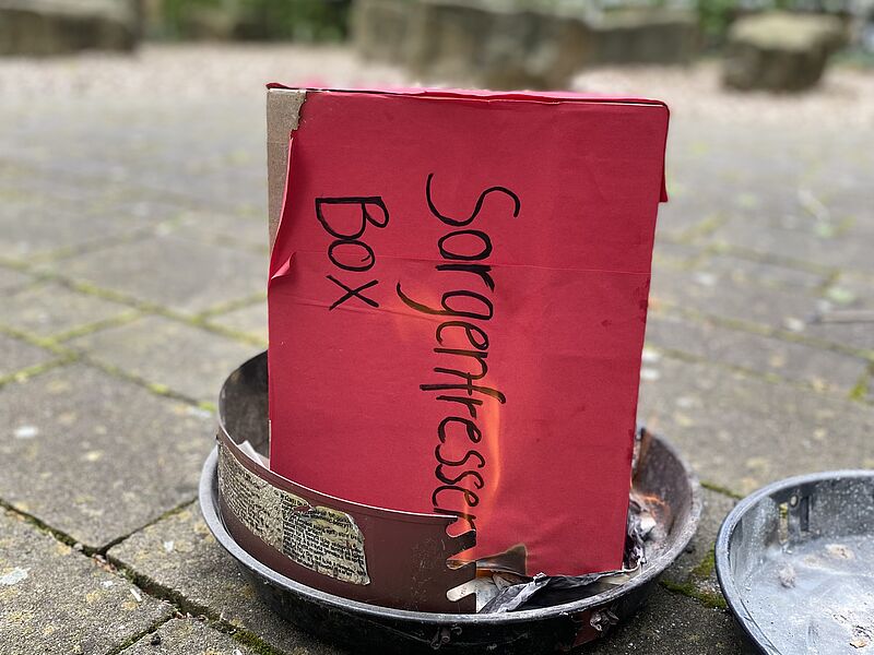 Um die Schüler*innen an unserer Schule auch mental unterstützen zu können, war es diesen möglich ihre Sorgen und Ängste zu den Geschehnissen in einer anonymen Sorgenfresserbox zu sammeln. Diese Box wurde im Anschluss als Symbol von mehreren Schüler*innen verbrannt.