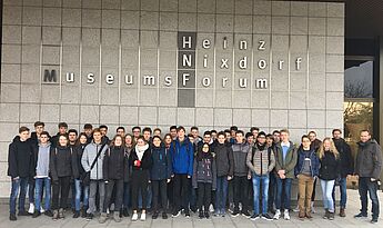 Bei Führungen in Kleingruppen durch die Ausstellungen im HNF und der späteren Eigenerkundung konnten die Schülerinnen und Schüler dabei viele Geschichten und viel Geschichte der Informatik, die sie schon im Informatik-Unterricht erabeitet hatten, wiedererkennen.