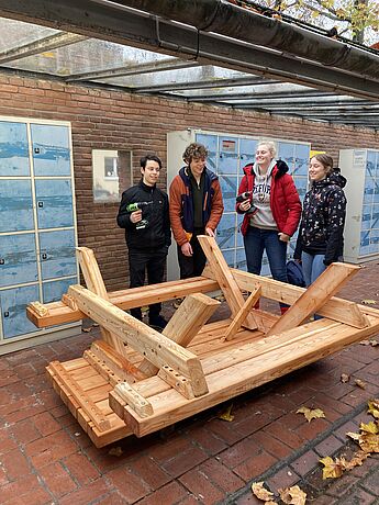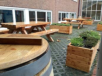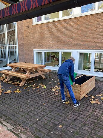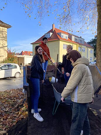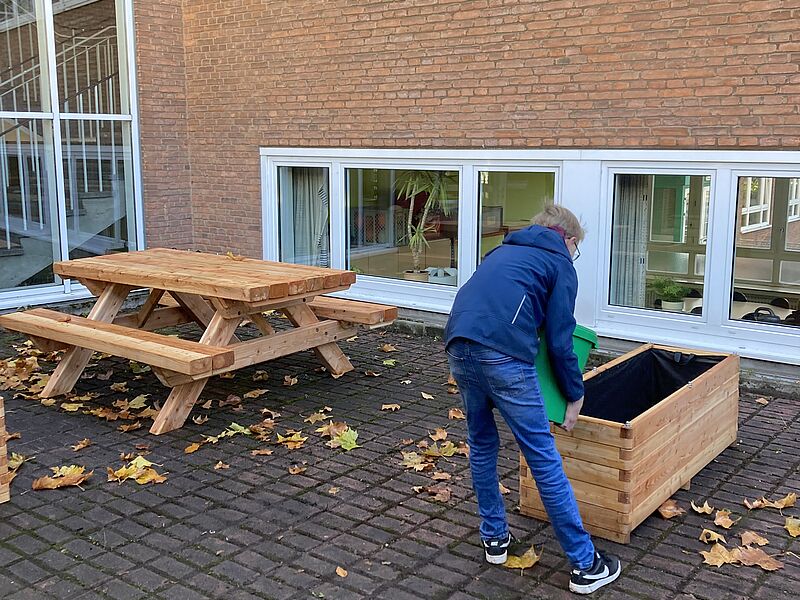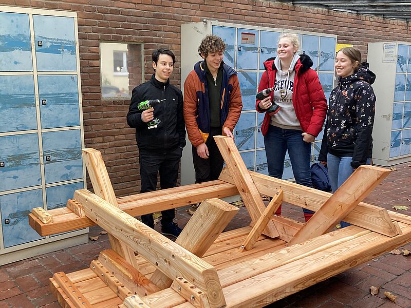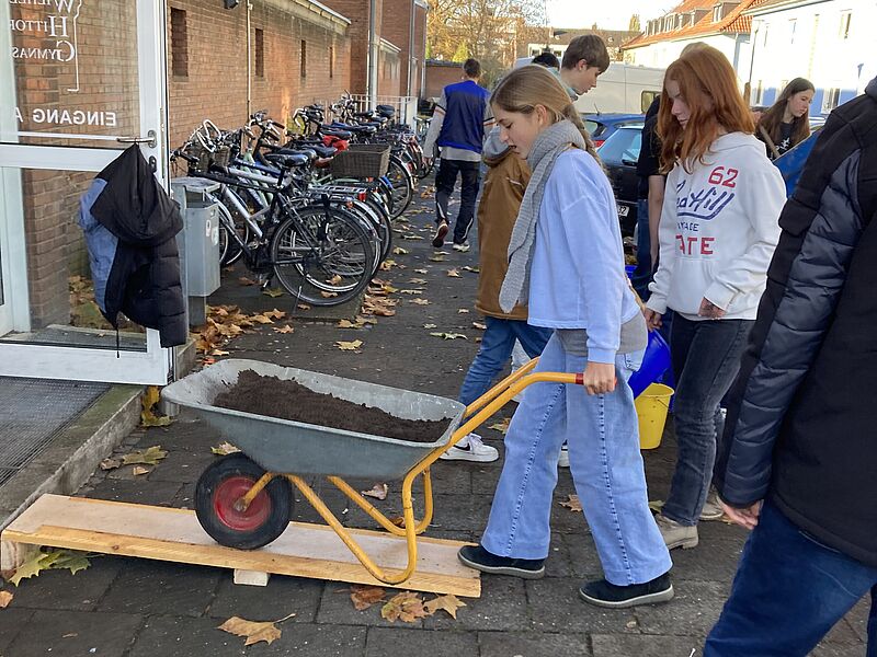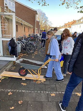 Bänke statt Formel aufstellen, Erde schippen statt Nullstellen ausrechnen – die Schüler*innen der Jahrgänge 8, 9 und Q1 und der Schulbeet-AG halfen begeistert bei der Einrichtung der Innenhöfe.