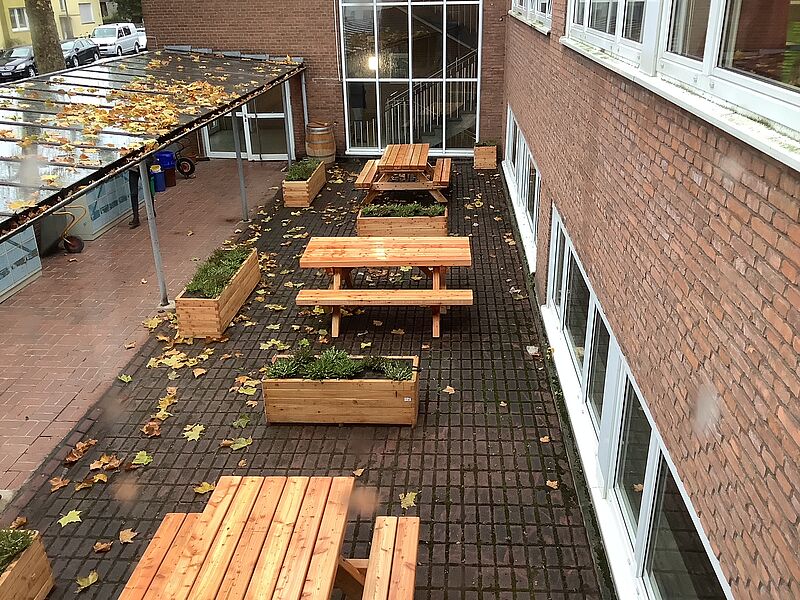Diese können im nächsten Sommer für ruhiges Arbeiten in Freistunden bzw. während Gruppenarbeiten der angrenzenden Klassen genutzt werden. Und wenn im kommenden Jahr auf dem Schulhof die Bagger für den Erweiterungsbau anrücken, werden die „neuen“ Flächen in den großen Pausen den Schulhof um ruhige Entspannungszonen erweitern.