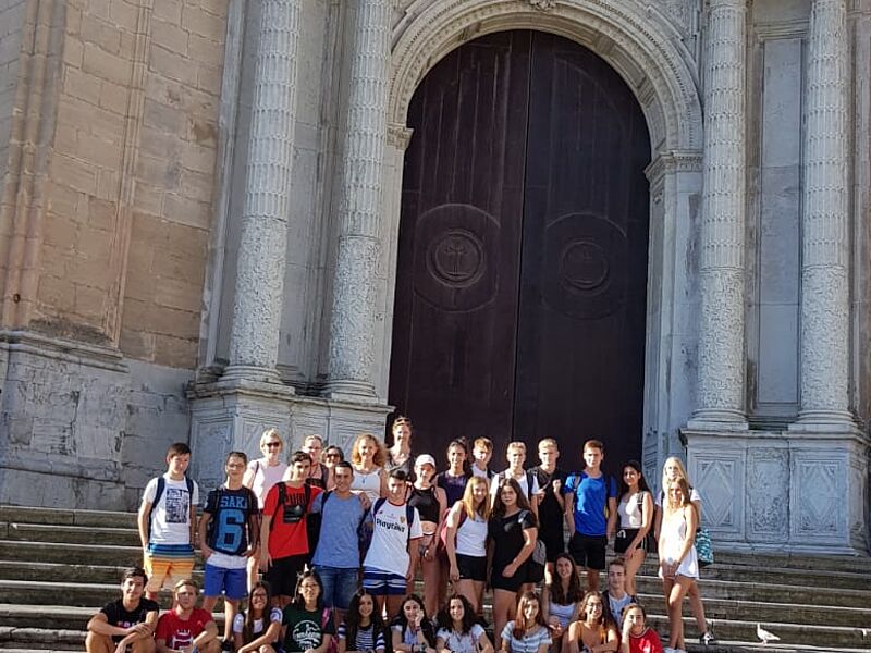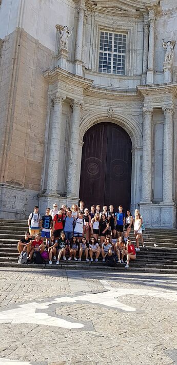 Fünfzehn Schülerinnen und Schüler der EF senden sonnige und entspannte Grüße aus Sevilla und Umgebung.