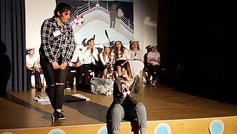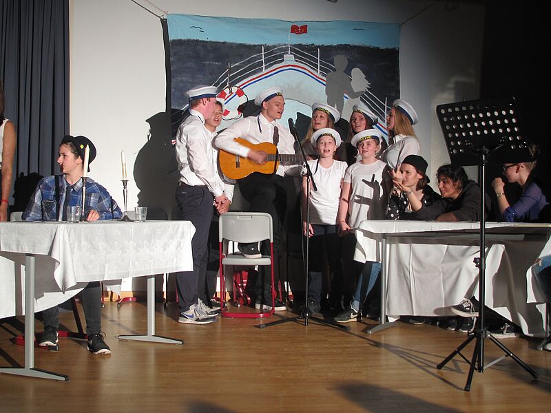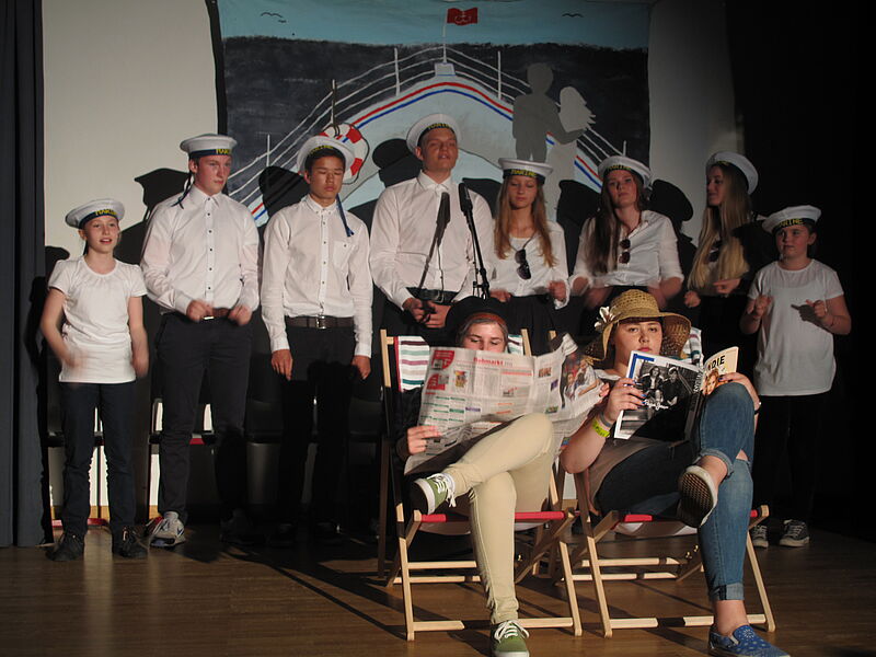 Die Szenen wurden nach dem Prinzip der "Songs in real Life" immer wieder durch Chor- und Sologesangsbeiträge des Oberstufenchores intensiviert, frei nach dem Motto: Wenn das Gefühl zu groß wird, entsteht ein Song. Anna gewinnt das Essen, der Chor stimmt dazu "I'm so excited" an. Sebastian und Eileen kommen sich am Lagerfeuer und zu den Klängen von Wolfgang Petri näher, als der Song "Verlieben, verloren, vergessen, verzeih'n" intoniert wird. Und am Schluss, wenn die Paare versonnen den Blick über das Meer schweifen lassen, singt der Chor "Ich habe einen Schatz gefunden und der trägt deinen Namen".