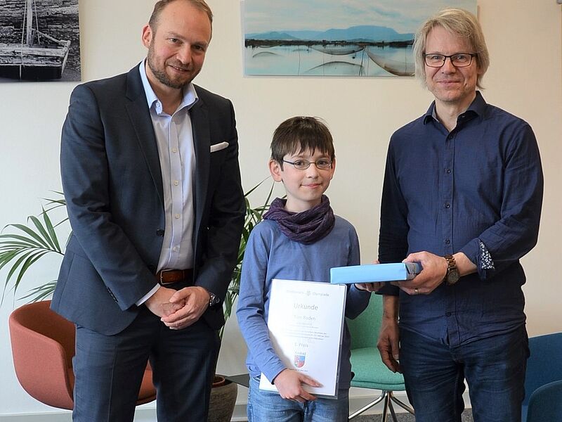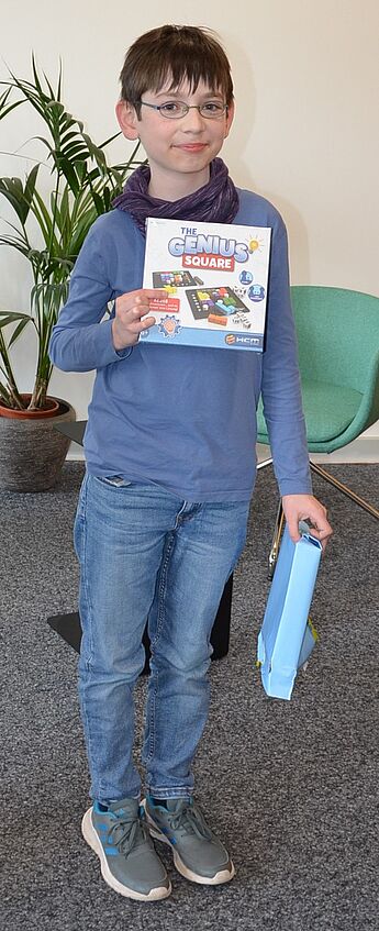 Tom Roden aus der Klasse 5b hat in der 3. Runde der Mathematikolympiade, bei der schwierige Knobel- und Kombinationsaufgaben im Vordergrund standen, einen ersten Platz belegt.