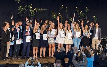 Und viel Lob: „Wir sind mega-mega-mäßig stolz auf euch“, sagte der Vertreter der Eltern, Franz-Josef Bröckers. Manchmal hätten die Eltern „als Spurassistent“ gedient. Die Schüler rief er auf, sich „zu engagieren“, sich „diese Welt immer wieder anzuschauen“. Viel Engagement bescheinigten ihnen auch der Schulleiter, Christian Schrand, und die Jahrgangsstufenleiterin Birgit Kondring. Diese Stufe habe sich um alle gekümmert, auch die, die von anderen Schulen oder Schulformen ans Hittorf gewechselt hatten. Zwei Absolventen kamen von Realschulen, eine von einer Hauptschule. Zudem attestierte Schrand der Stufe ein hohes Leistungsniveau.