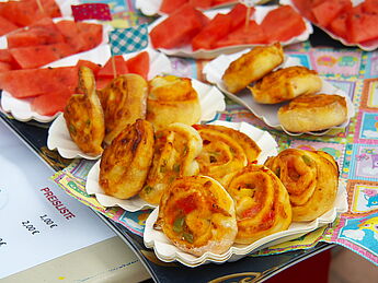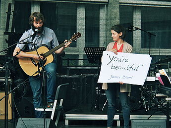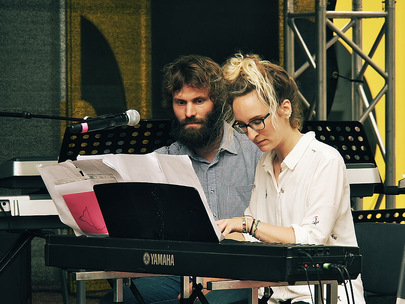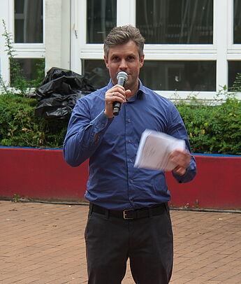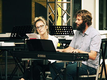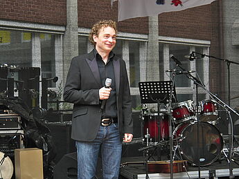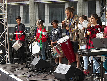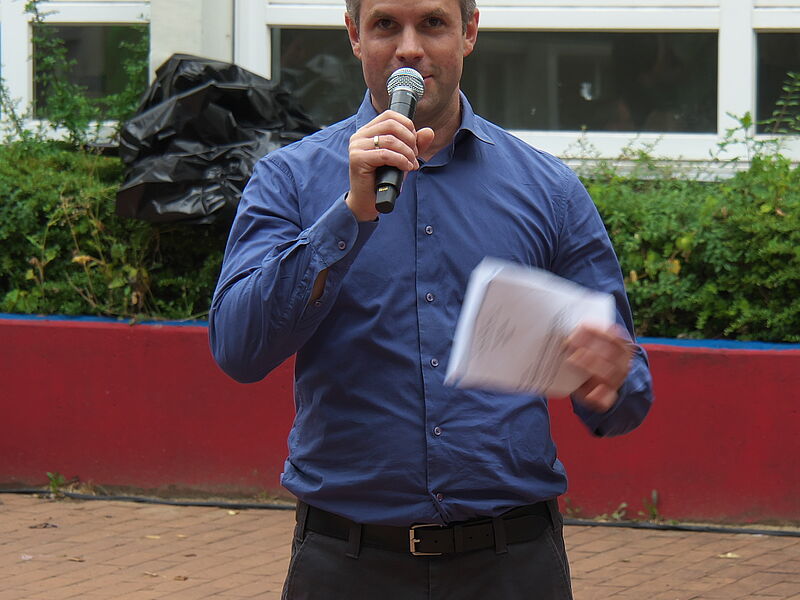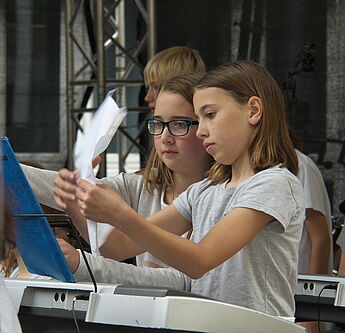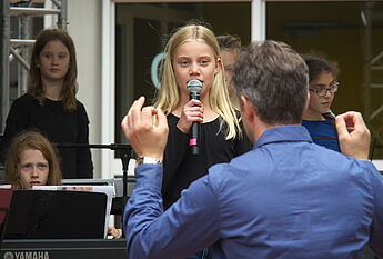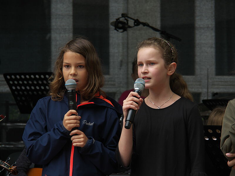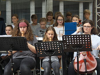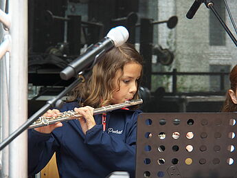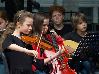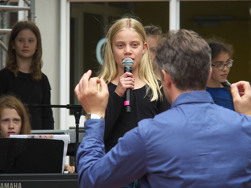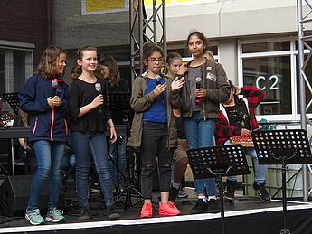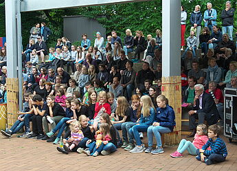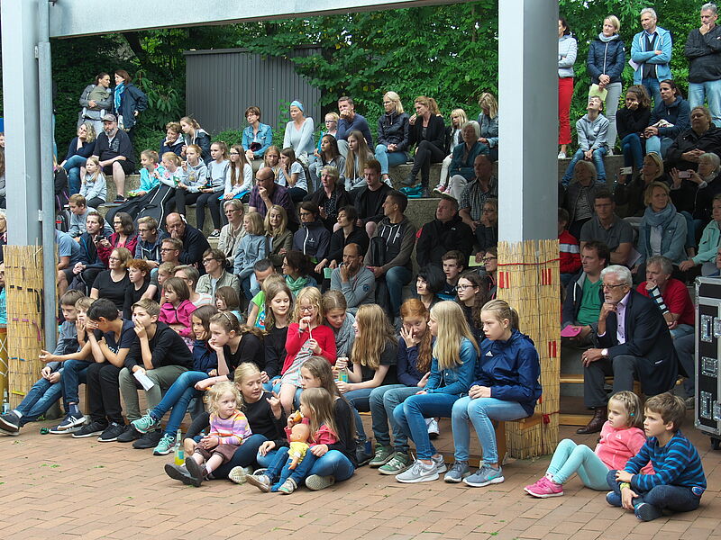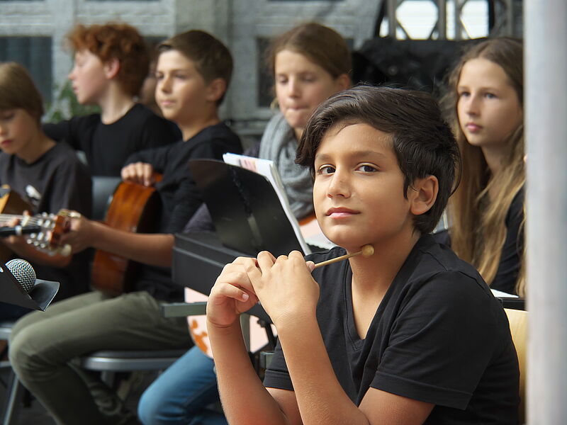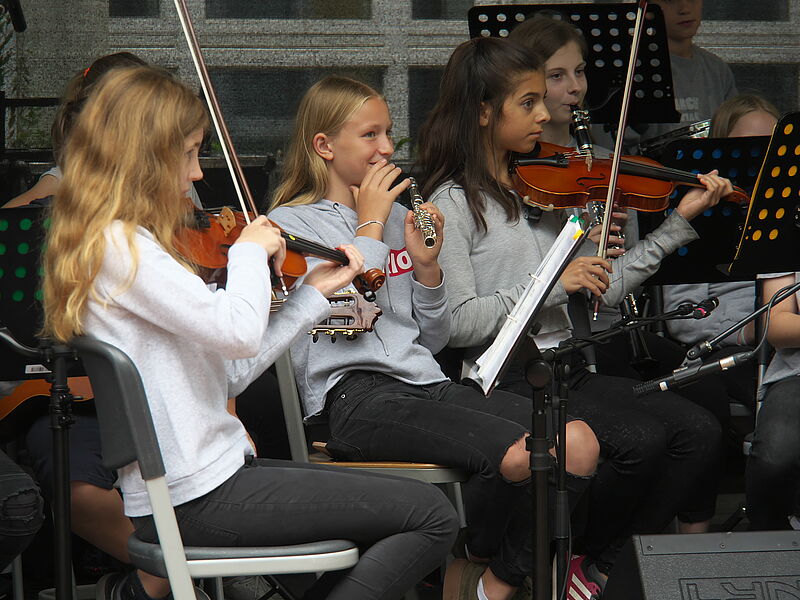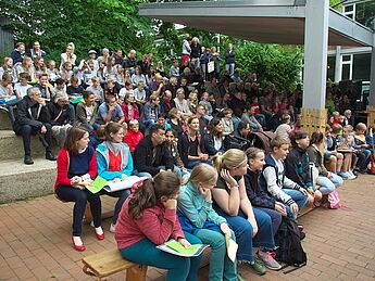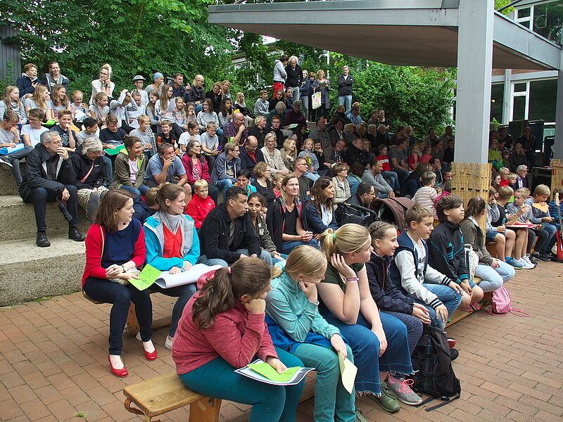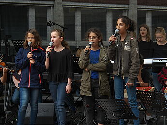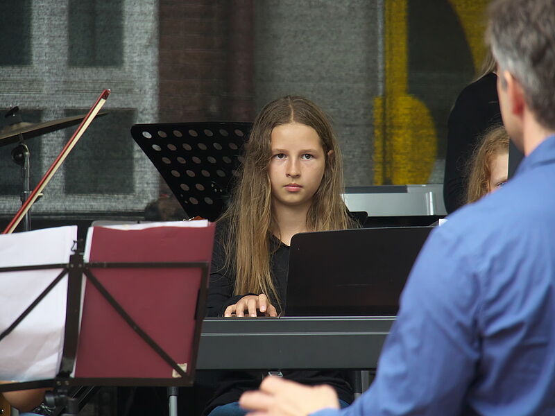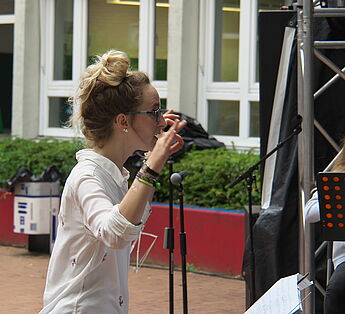 Sommerlich-entspannte sowie rhythmisch-mitreissende Solo,- Ensemble- und Orchesterdarbietungen ließen das regnerische Wetter vergessen. Schülerinnen und Schüler aus allen Jahrgängen und eine frisch gegründete Lehrerband präsentierten ein breites musikalisches Repertoire von beliebten Filmmelodien über Musical-Soli bis hin zu Latino-Rhythmen, die die Schüler, Eltern und Lehrer im Publikum auf die beginnenden Ferien einstimmten.