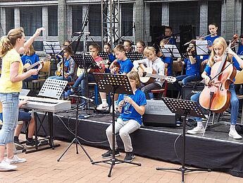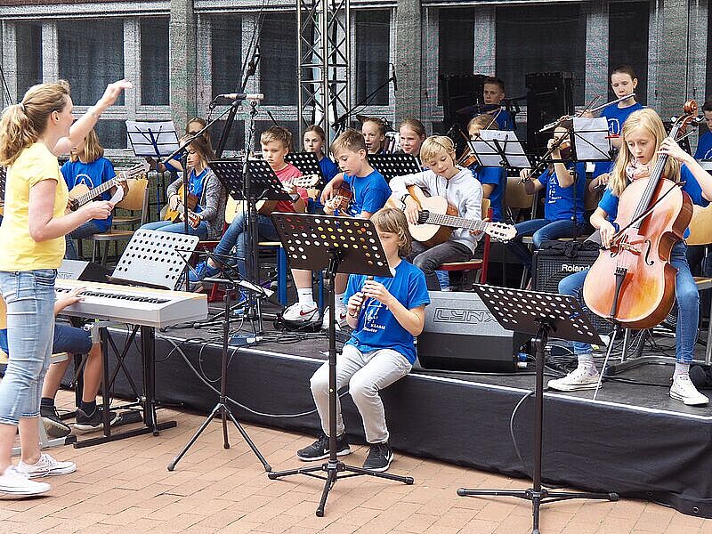 Auftreten auf der großen Bühne auf dem Schulhof werden unter anderem die Musikklassen der Jahrgangsstufen 5, 6 und 7, aber auch Einzelbeiträge von musikbegeisterten Schüler*innen werden zu hören sein.