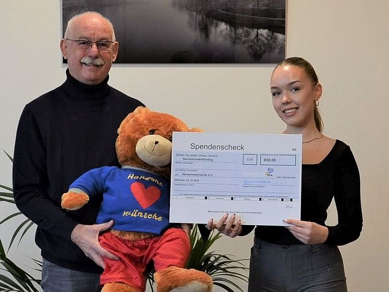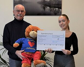 Die erste Spende ging an den Verein Herzenswünsche e.V. Der Verein erfüllt Kindern, die unter schweren Krankheiten leiden oder in schwierigen Verhältnissen leben, einen lang ersehnten Wunsch, damit sie die nötige Motivation erlangen, weiter zu kämpfen und nach vorne zu sehen. Herr Häcke nahm dankend den Scheck entgegen und berichtete von der Arbeit von "Herzenswünsche".