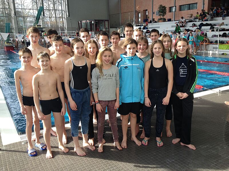 Die Schülerinnen und Schüler des WHGs haben heute erfolgreich an den Stadtmeisterschaften Schwimmen im Stadtbad-Mitte teilgenommen. Beide Mannschaften (Mädchen Wetttkampfklasse IV und Jungen Wettkampfklasse III) belegten gegen eine starke Konkurrenz jeweils einen guten 2. Platz.