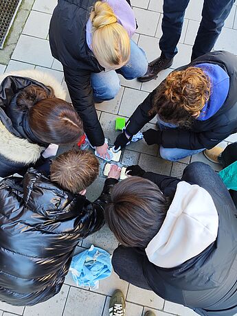 Am Freitag, dem 21.11.2025, hat der katholische Religionskurs, bestehend aus Schülerinnen und Schülern der Klassen 10a und 10c, im Rahmen der Unterrichtsreihe zum Thema "Kirche und NS-Zeit" an der Stolperstein-Aktion teilgenommen. Die Schülerinnen und Schüler haben Stolpersteine in der Kurzen Str. 10 (von Christine C.), Hammerstraße 101 (von Erich u. Benjamin Cohen), Augustastraße 4 (von Fam. Steinberg) und im Dahlweg 62 (von Hedwig Rosenberg) zum Glänzen gebracht, so dass man sie wieder gut wahrnehmen und ihrer als Opfern des Nationalsozialismus gedenken kann, wenn man sie passiert.