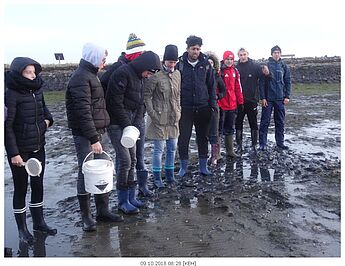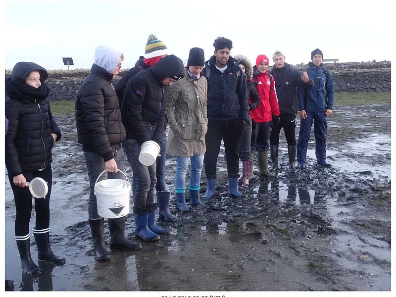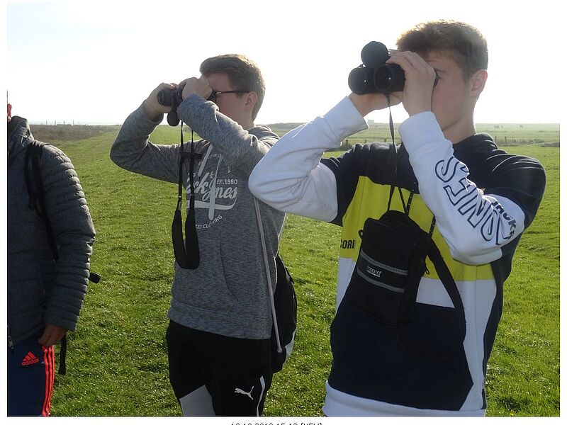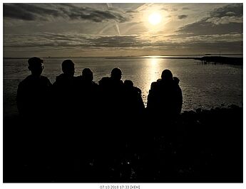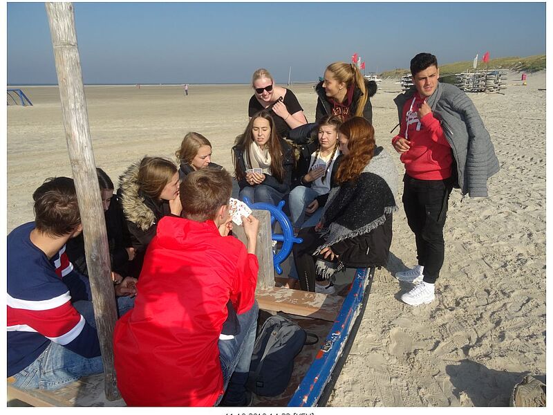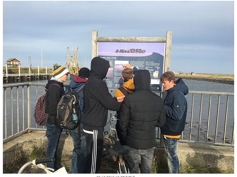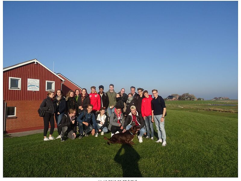 Aber auch die Schülerinnen und Schüler stiegen mit guter Laune in den Zug. Aber was sie genau erwarten würde, war ihnen nicht klar. Ein kritischer Blick wurde während der längeren Anreise immer mal wieder formuliert. Immerhin wurde im Jahrgang verglichen mit Fahrten nach London, Prag oder Paris.... Was sollte diese 12 Quadratkilometer große Hallig da schon bieten???