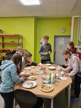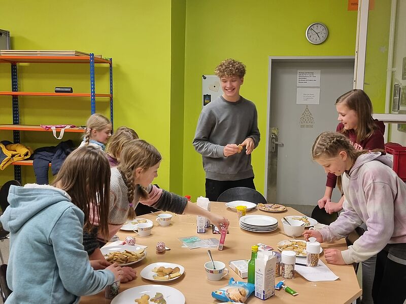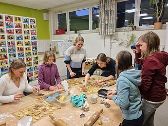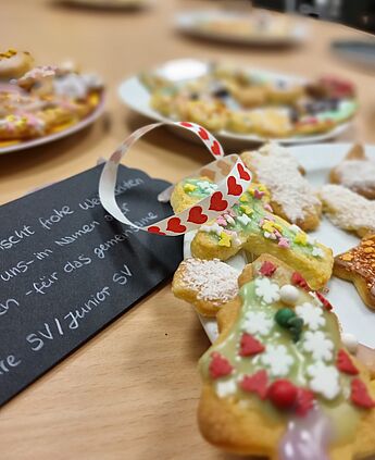 Vertreterinnen und Vertreter der kleinen und großen SV haben sich am vergangenen Donnerstag zum Plätzchenbacken in den Räumen der ÜMB getroffen. Bei Weihnachtsmusik wurden zahlreiche Bleche belegt und mit viel Kreativität Plätzchen dekoriert und gestaltet.