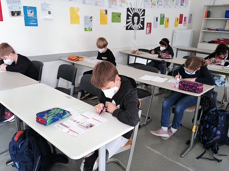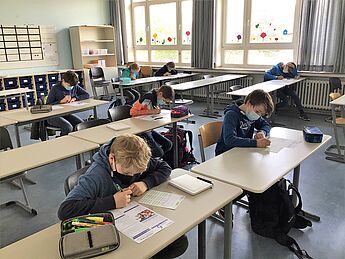 Corona erforderte auch dieses Jahr besondere Maßnahmen. Schüler/innen aus der 5 und 6 machten den Test im Präsenzunterricht, 7-, 8- und 9-Klässler absolvierten ihn online. Anbei: Impressionen vom Test aus dem 5. und 6. Jahrgang.