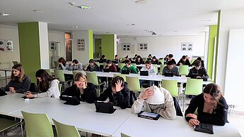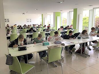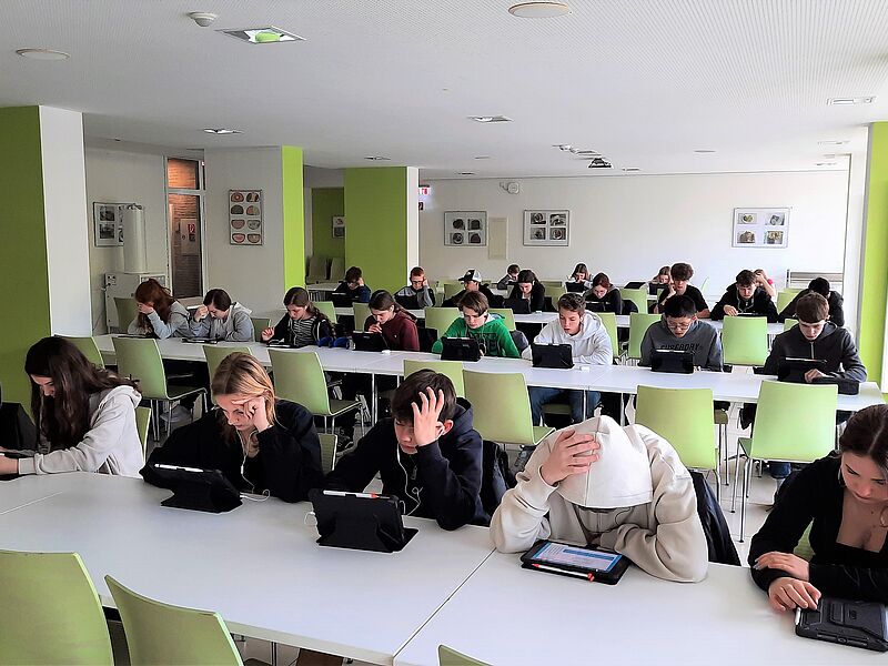 Während die Schüler*innen aus der 5 – 7 den Test in der gewohnten Papierform machten, führten die 8- und 9-Klässler*innen den Wettbewerb auf ihren Tablets online durch.