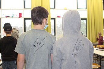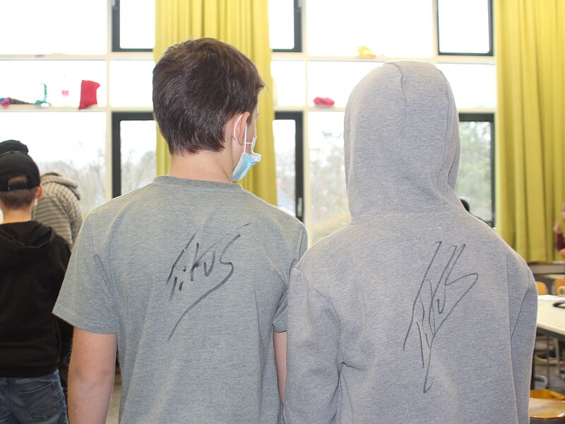 Am Montag war kein normaler "Schultag" für die 12 Kinder der Forscher-AG. Titus Dittmann - begleitet von Ralf Middendorf, einem bekannten ehemaligen Profi-Skater aus Münster - besuchte das Wilhelm-Hittorf, seine ehemalige Schule. Drei Stunden nahmen sich die zwei „Zeitzeugen“ Zeit, um gemeinsam mit den Kindern über alte Skateboardmodelle zu sprechen, Fragen wie „Wie sah die Skaterkultur in Münster früher aus?“ zu beantworten und – natürlich – auch diverse mitgebrachte Skateboards und T-Shirts zu signieren. Ein besonderes Highlight war sicherlich auch das gemeinsame Besuchen der Sporthalle - dem Ort, wo damals alles begann.