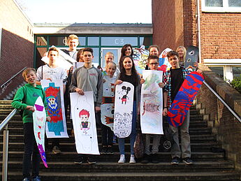 Im Rahmen des Kunstunterrichts konnten die Schülerinnen und Schüler der Klasse 8a an einem von der Lehrerin organisierten Skateboard-Design Contest teilnehmen. Dieses Angebot traf auf großes Interesse, da ein Großteil der Klasse selbst begeisterte Skateboard-Fahrer sind. So entstanden vielfältige, kreative Arbeiten, die die Decks von Skateboards schmücken könnten.