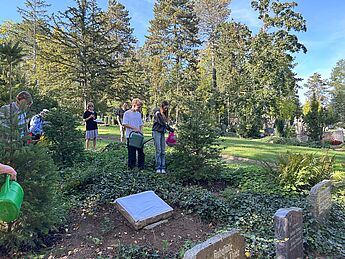 Vor Ort wurde in einem Festakt die Baumpatenschaft auf dem historischen Friedhof in Weimar mit Reden des Weimarer Oberbürgermeisters, unseres Schulleiters und von Luis und Hannah übernommen. Daneben besuchten wir auch die Gedenkstätte auf dem Ettersberg, das Bauhaus-Museum und die Stadt Weimar.