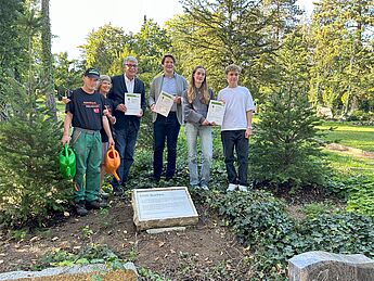 Der Förderverein der Villa ten Hompel unterstützte unsere Fahrt nicht nur finanziell großzügig, sondern übernahm selbst auch eine Baumpatenschaft in Weimar. Robert von Olberg, ehemaliger Hittorfer und Vorstandsmitglied im Förderverein der Villa, reiste dazu mit nach Weimar.