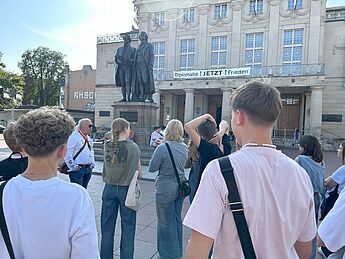 Im Rahmen einer Projektfahrt konnten Schüler:innen in Weimar und in der Gedenkstätte des Konzentrationslagers Buchenwald erfahren, was es bedeutet, wenn eine Gesellschaft anders denkende Menschen diskriminiert und rassistisch gegen Bevölkerungsgruppe vorgeht.