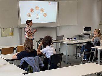 Während die eine Klasse sich über den toten Winkel informierte und ihre Reaktionszeit testete, übten andere die stabile Seitenlage, das Anlegen eines Kopfverbandes und Wiederbelebungsmaßnahmen am Unfallort. In einem beeindruckenden Vortrag wurde über die Folgen schwererer Kopfverletzungen aufgeklärt, die durch das Tragen eines Helmes vermieden werden können. Dass Aufmerksamkeit und Konzentration besonders wichtig für die Vermeidung von Unfällen ist, wurde im Achtsamkeitsworkshop thematisiert. Hier konnten die Schülerinnen und Schüler passend zu unserer Woche der Freundlichkeit üben, achtsam und vorsichtig miteinander umzugehen.