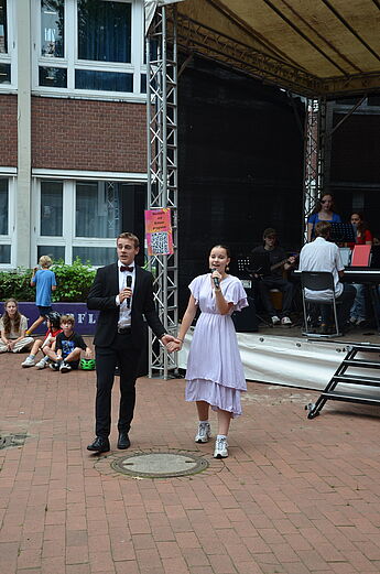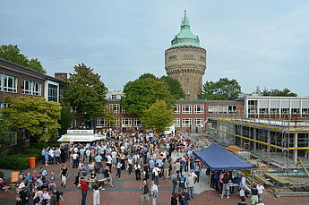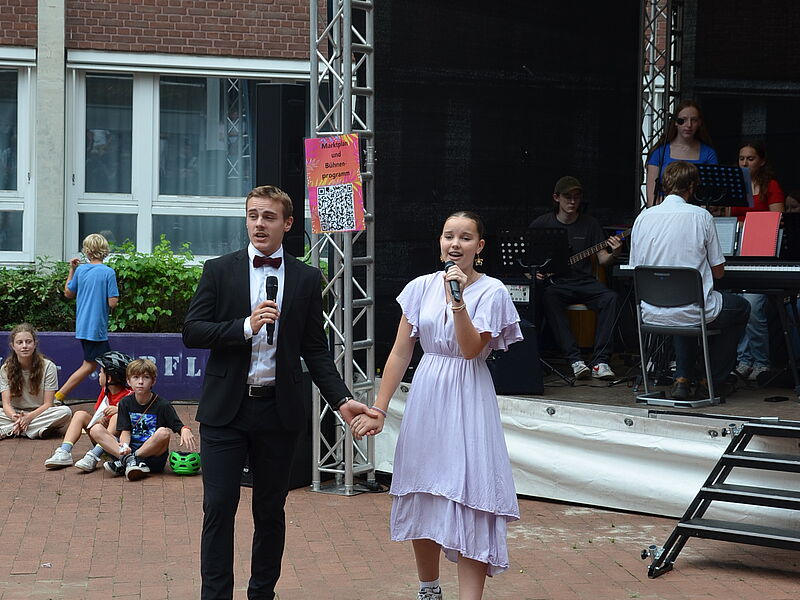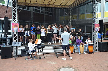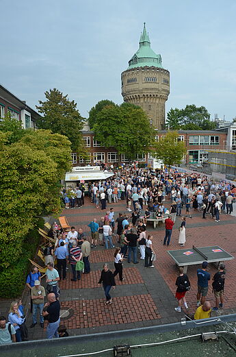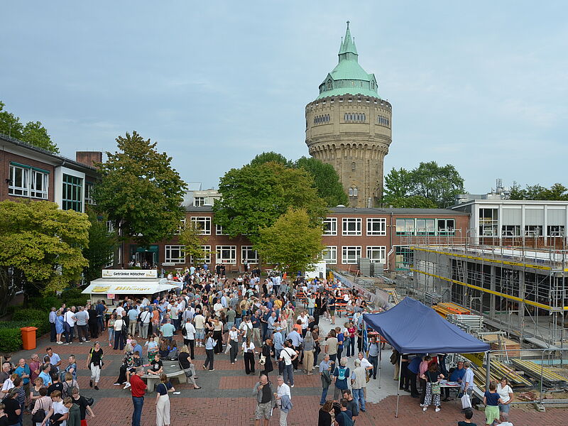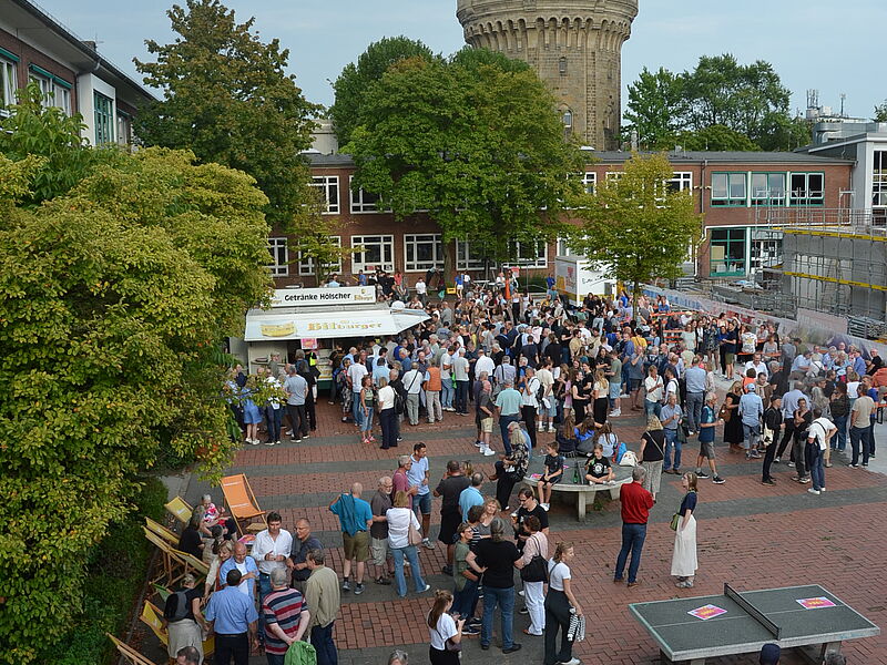 Am vergangenen Freitagnachmittag fand unser Schulfest statt, dies in einer Dimension, die es wohl so häufig in der Geschichte unserer Schule nicht gegeben haben dürfte: Schüler:innen, Lehrer:innen, Ehemalige und alle am Schulleben Beteiligte trafen sich am Wilhelm-Hittorf-Gymnasium, um zusammen Musik zu genießen, zu reden, zu essen und die vielfältigen Aktionsmöglichkeiten auszuprobieren, die die Klassen vorbereitet hatten (z.B. Spiele, eine Geschichtsausstellung, eine Geisterbahn, eine Tombola und die vielen Treffen ehemaliger Jahrgänge in den Klassenzimmern).