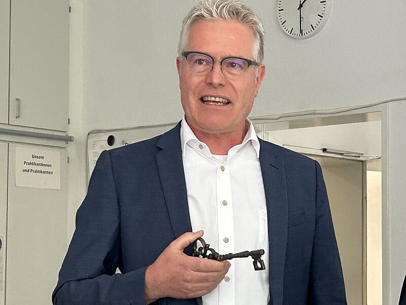 Heinemann selbst überreichte in seiner Rede Schulleiter Korfsmeier einen "Schlüssel zur Freiheit". Im Rückgriff auf den Kurzfilm "Die Schlüssel zur Freiheit" von Wim Wenders betonte er seine Überzeugung, dass Freiheit nichts ist, was man vorfindet, sondern etwas, das man sich erarbeiten und nehmen muss. "Freiheit ist nicht selbstverständlich, sondern muss bewahrt und verteidigt werden". Er stellte die offene Frage, wie in Freiheit heute, auch im Schulsystem, investiert werden könne und äußerte seine Zuversicht, dass Korfsmeier eine Antwort auf diese Frage finden würde. Musikalischer Höhepunkt war ein von Martin Weller vorgetragenes Lied über stürmische Zeiten, begleitet von Andreas Marcus.