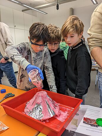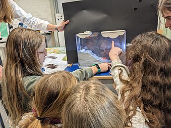 Mit großer Neugier und Eifer erforschten die jungen Klimaforscher*innen zum Beispiel darüber, wie Wolken entstehen, was es für konkrete Folgen für Münster hat, wenn die Gletscher weiter schmelzen, aber auch, welche Materialien sowohl von ihrer Dämmfähigkeit, als auch hinsichtlich ihres ökologischen Fußabdruckes am besten für den Häuserbau der Zukunft geeignet sind.