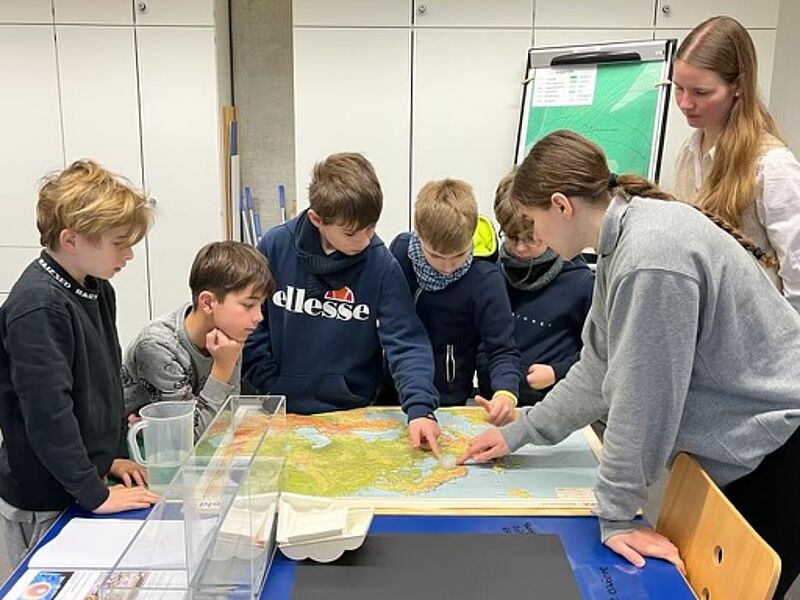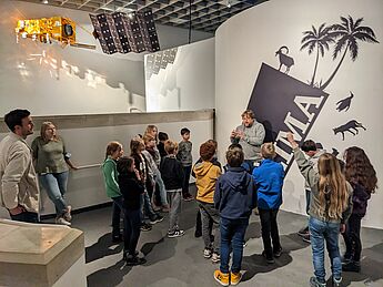 Am 10.02.2023 machten sich 15 Jungforscher*innen aus der Jahrgangsstufe 5 auf, um im LWL-Naturkundemuseum Klimaphänomenen auf den Zahn zu fühlen. Dort erhielten die Forscher*innen eine kurze Führung durch die aktuell angebotene Klimaausstellung.