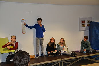 Während ein Teil der Eltern sich im alten Musiksaal an diesen Beiträgen erfreuen konnte, gab es für die anderen in der Mensa Informationen zum Hintergrund des alljährlichen Lateinamerika-Abends.
