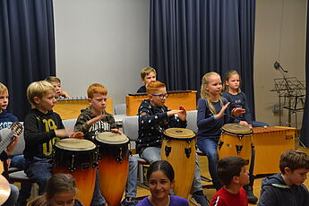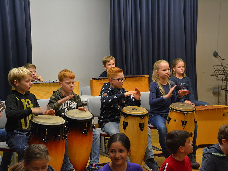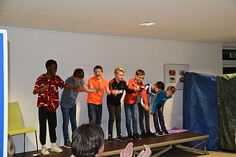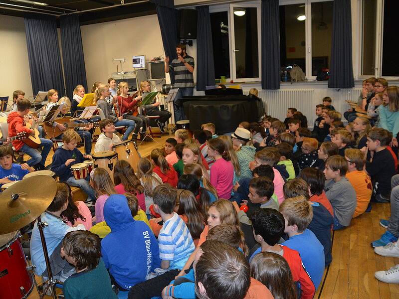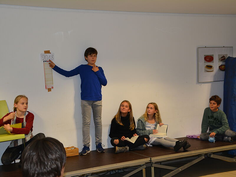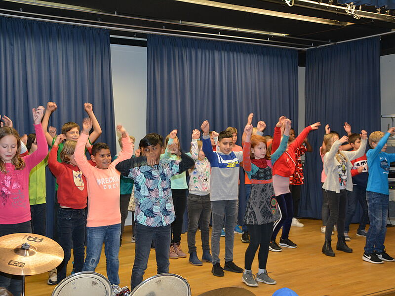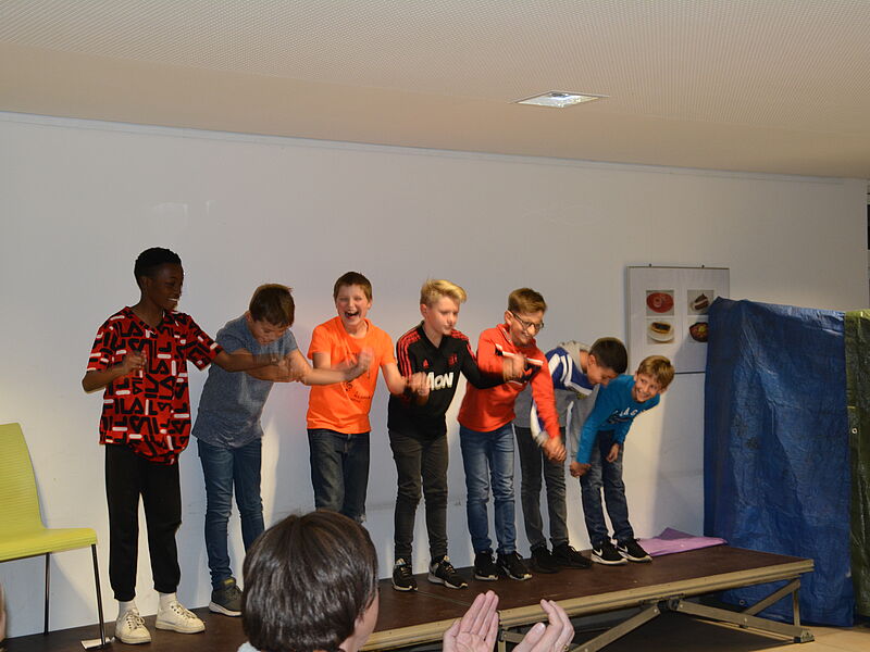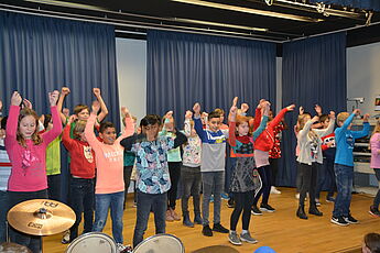 Wie jedes Jahr hatten auch diesmal die 5. Klassen ihre Eltern und Geschwister eingeladen, um ihnen zu zeigen, dass Schule mehr ist als Vokabeln, Formeln und Daten zu lernen. Die Schüler und Schülerinnen haben mit Gesang, Orchester, Tanz, Theater und Ausstellungswänden ein bisschen Lateinamerika in die deutsche Schule gebracht. Die Musikklasse zeigte mit Un poquita samba, dass sie bereits zu einem richtigen Orchester zusammengewachsen ist. Die 5b hat sich an die spanische Sprache getraut und Un poquito cantas gesungen und auf Instrumenten begleitet,während die 5a zu Echame la culpa getanzt hat. Mit Samba para todos hat die 5c schon dann Vorgeschmack auf die später folgende Samba-AG gegeben, indem sie das Stück instrumental umgesetzt hat.