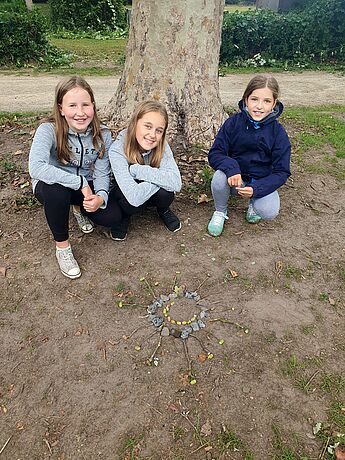 Vor Ort wurde Fußball und Frisbee gespielt, mit Sand wurden Mauern und mit Naturmaterialien Landart-Kunstwerke gebaut, es wurde „Werwolf“ gespielt, ein Staffellauf der vier 6. Klassen gegeneinander organisiert und vor allem viel gelacht. Die gute Laune wurde auch nicht durch den einsetzenden Nieselregen getrübt, sodass alle auf einen erfolgreichen Wandertag zurückblicken können.