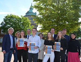 Lea Jonitz erhielt für ihren lebendigen und fundierten Vortrag über das Märchenhafte in J. Gaarders Roman "Das Orangenmädchen" den Hauptpreis der Rotarier für die beste Präsentation von 100 Euro und einem Assessment-Center-Coaching. Die übrigen Schüler/innen erhielten Buchgutscheine der Münsteraner Buchhandlung Ringold.