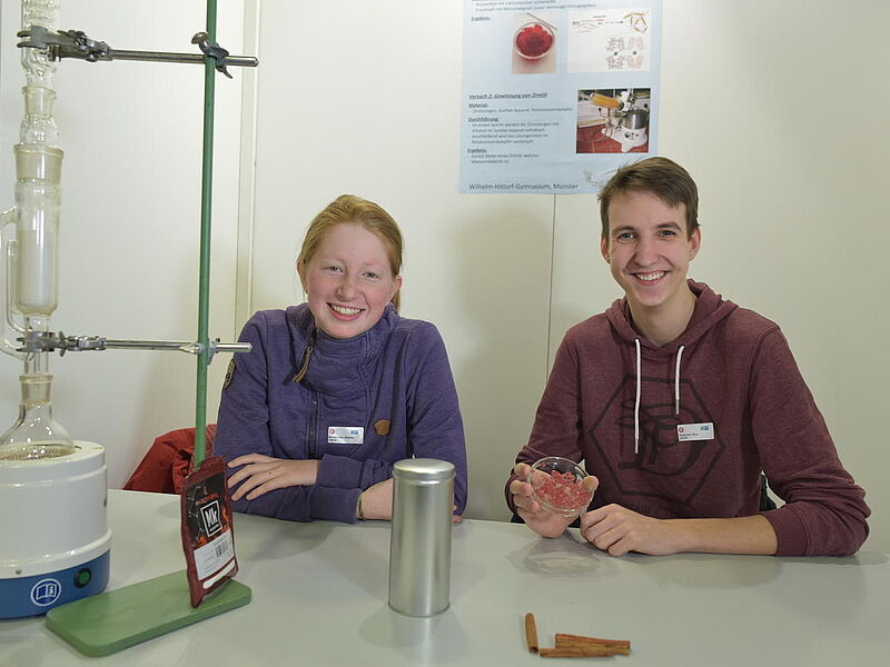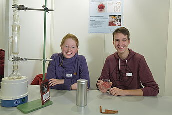 Wiebke Brockmeier und Nico Gutscher begaben sich in die "Molekularküche" und stellten auf chemischem Wege unechten Kaviar her und gewannen Zimtöl aus Zimtstangen.