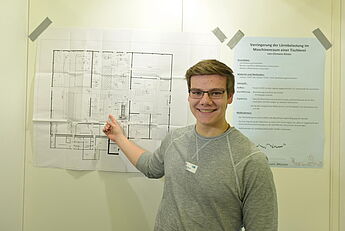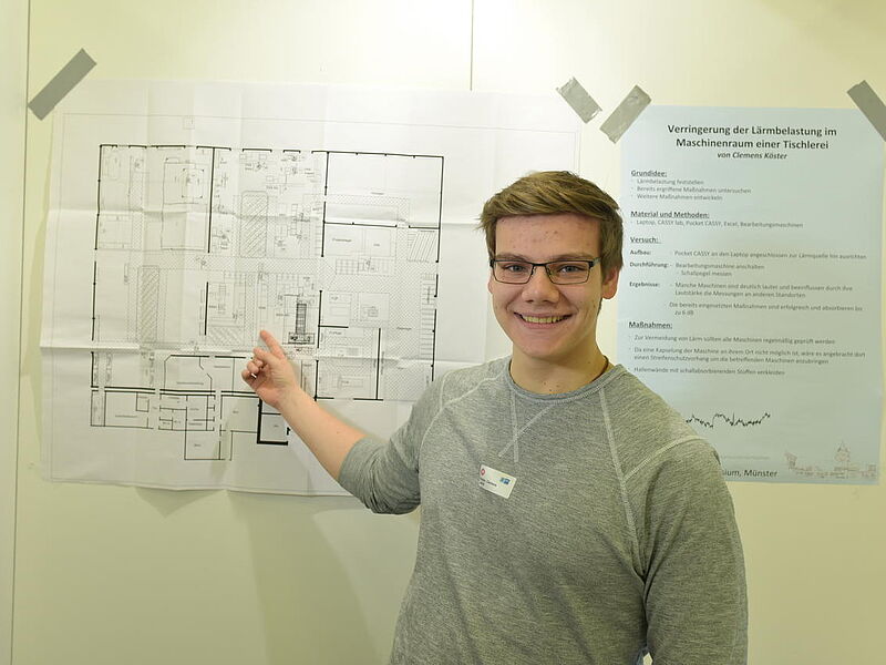 Clemens Köster hatte sich im Fachgebiet Arbeitswelt um "Die Verringerung der Lärmbelastung im Maschinenraum einer Tischlerei" beschäftigt.