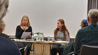 Anlässlich der Stolpersteinverlegung für die Familie Kuppenheim – Stolpersteine erinnern an jüdische Opfer des Nationalsozialismus – fand in der Villa ten Hompel eine Gedenkveranstaltung des Vereins „Spuren finden“ statt. Julie Hoffmann und Levke Linder, Schülerinnen der Jahrgangsstufe Q 1, übernahmen es dabei, ein Gedenkblatt für Ursula Kuppenheim zu gestalten und vorzutragen. Sie hatten einen fiktiven Brief Ursulas an ihren nach Ecuador geflohenen Vater geschrieben. Ursula Kuppenheim galt als „Mischling 1. Grades“ – so die Nazi-Diktion –, also ein Kind mit einem jüdischen Elternteil. Sie selbst war wie ihre Mutter evangelisch. Trotzdem musste sie sich im letzten Kriegsjahr vor den Nazis auf im Umland Münsters liegenden Bauernhöfen verstecken, um der drohenden Deportation zu entgehen. Und schon in den Jahren davor waren sie und ihre Familie immer wieder den Schikanen des NS-Regimes ausgesetzt, zum Beispiel durfte Ursula Kuppenheim ihre Schulzeit nicht wie geplant durchlaufen. Erst nach dem Krieg konnte sie ihre Schullaufbahn an der Vorgängerschule des WHG in Sendenhorst wieder aufnehmen. 1948 verließ sie mit ihrer Mutter Deutschland, um ihren Vater, den sie acht quälend lange Jahre nicht gesehen hatte, wiederzutreffen.